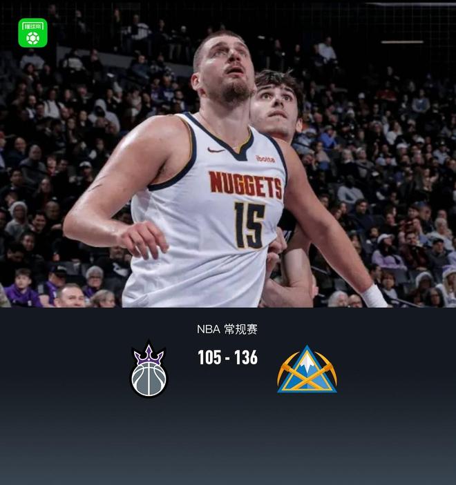 北京时间12月12日,NBA常规赛中,萨克拉门托国王队对阵丹佛掘金队。首节比赛,掘金队依靠约基奇的出色表现建立了15分的领先优势。半场结束,掘金77-54领先国王。萨克拉门托国王蒙克18分4篮板5助攻,威少17分3篮板5助攻;丹佛掘金队约基奇得到36分、12个篮板和8次助攻,沃特森得到21分、2个篮板和1次助攻。首节比赛,双方前半节进攻缓慢且紧张。下半场,掘金率先找到进攻状态。约基奇内外连续得分领先多分,继续将分差扩大至两位数。 KIC单场挽救16分。全节结束,掘金41-26国王。第二节,掘金替补席延续势头,迅速领先。20多点。随后国王威斯布鲁克和基冈穆雷站出来联手将分差缩小到近13分。本节后半段,国王队依然依靠威少和基冈穆雷得分,逼迫掘金队。节末国王进攻失去动力,掘金约基奇串联进攻再次领先20分以上。半场结束,掘金77-54国王。第三节,掘金队约基奇和穆雷联手迅速以10-0领先到30分以上。随后王者基冈穆雷、阿丘瓦、德文卡特等人抓住机会得分将分差缩小至近25分,随后与掘金队保持拉锯战。三节结束,掘金109-81国王。第四节,双方早早撤兵,更换主力。掘金队始终保持着30分的分差。全场比赛结束,掘金136-105国王s。球员数据:国王蒙克18分4篮板5助攻1抢断,威少17分3篮板5助攻,基冈穆雷15分6篮板1助攻2抢断2盖帽;丹佛掘金队约基奇得到36分、12个篮板、8次助攻和2次抢断,沃森得到21分、2个篮板和1次助攻,卡梅隆·约翰逊得到16分、3个篮板、1次助攻和1次抢断。首发阵容:萨克拉门托国王:威斯布鲁克、基冈穆雷、马克西姆莱诺、德罗赞、尼克克利福德;丹佛掘金队:约基奇、沃森、卡梅隆·约翰逊、贾马尔·穆雷、斯宾塞·琼斯。